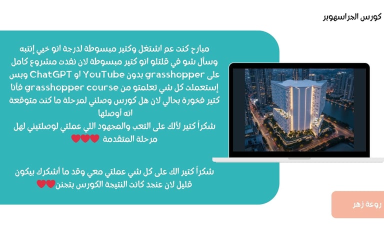 ✨ باختصار: Grasshopper بيخليك تنتقل من إنك ترفع مجرد شكل… لإنك “تبني system” بيتغير ويتطور لحاله.